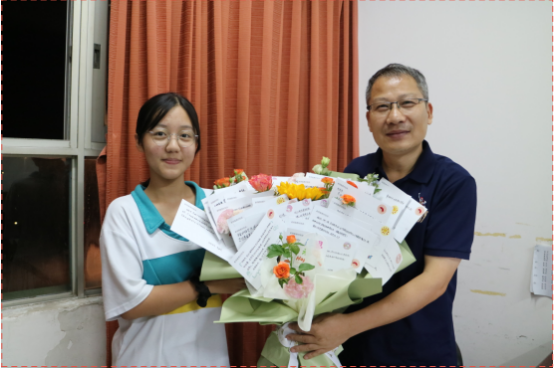 王喆:今年的教师节,我们给每一位老师都送上了一束承载着同学们满满祝福的花。每一位老师都感到非常开心与惊喜。同时,我也非常感谢辛苦的家长们,在工作之余为我们制作花束。作为物理课代表,我在收集同学们的贺卡时,发现大家都用真诚的语言表达了对王老师的喜爱,展现了同学们真诚善良的心。