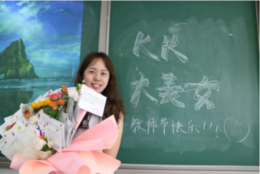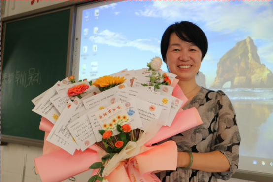 李佳媛:教师节那天,班级的节日氛围格外浓厚,大家嘴角是藏不住地上扬,到了早读第一节课,随着龚老师走入教室,教室瞬间安静了下来。此时,班长却走上去跟老师玩了个游戏,老师很不解但还是配合。当花送到老师手里时,她还没反应过来。而后,就惊喜地捂住了嘴。“谢谢大家!”她笑着说,“这是我过过最好的教师节了。”
