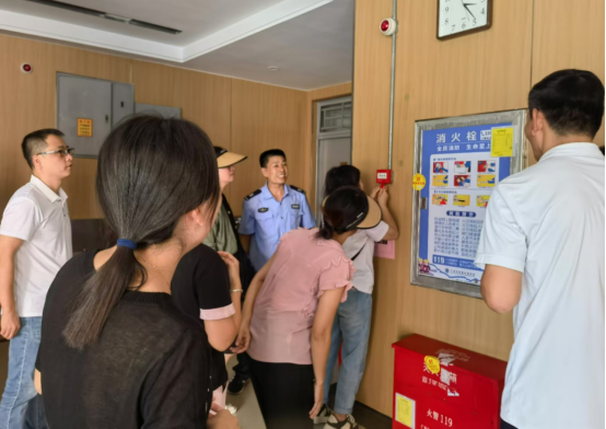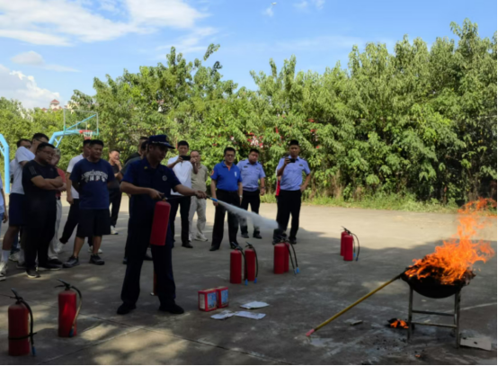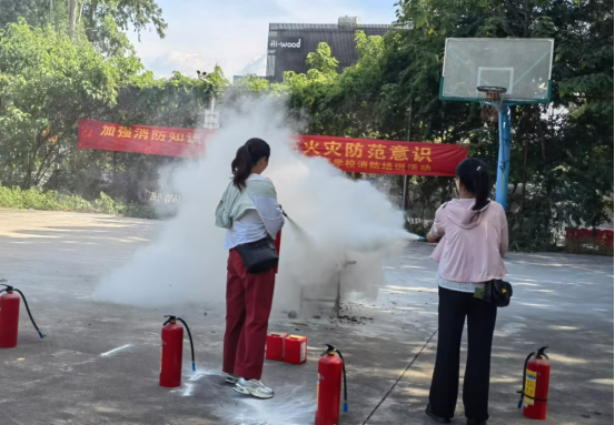 为达到最佳学习效果,学校还特意在户外篮球场设置灭火区域,消防队谢班长现场引导大家灭火器的使用方法、实操灭火方法及流程,让老师们亲自上阵体验如何扑灭。之后,在校卫队长彭显斌的带领下,各部门宿管员来到15栋男生宿舍一楼大厅,学习如何快速开启报警装置和关闭报警装置。