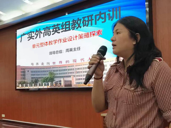之后周英主任就本学单元整体教学的研究做出部署,本学期将在单元整体教学研究重点放到单元作业设计的研究与实施上,充分考虑每一节课的课堂容量、教学内容、教学手段、教材理解、作业设计,扎实课堂,真正体现课堂的高容量、高质量、高效能。