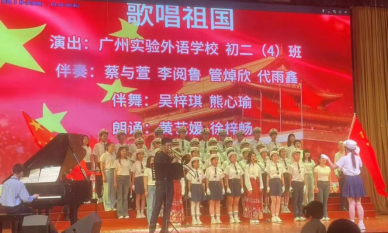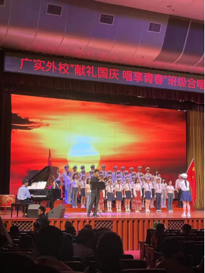 为了庆祝祖国75周年华诞,激发学生们的爱国情怀,广实外校举行了“献礼国庆 唱响青春” 国庆合唱比赛初二专场。孩子们积极参与用歌声表达对祖国的热爱之情。特别感谢跟孩子们同台演出的黄艺媛妈妈、蔡与萱妈妈、吴梓琪妈妈、李雨泽妈妈、黄慧妍妈妈、徐梓畅妈妈、杜智凯爸爸妈妈以及前来帮忙化妆的蔡楚明妈妈等默默支持的家长们。