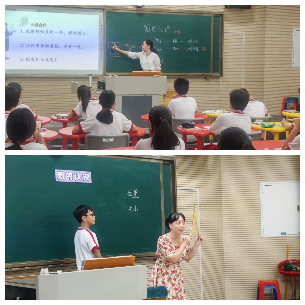 课堂上,两位教师各具特色。一位教师以有趣的羊吃草动画导入,迅速吸引了学生的注意力。从“羊把能吃到的草都吃完时,地上形成的是一个怎样的图形?”,让学生直观地感受到圆的形成。在教学过程中,通过让学生动手操作画圆、测量圆的半径和直径等活动,引导学生自主探究圆的特征。学生们积极参与,课堂气氛活跃。