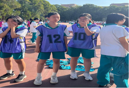 遇见两个同学,问检录处具体位置,她们都表示不知道。我更着急了。我转变方向,跑往主席台右侧的大本营。一到大本营,孩子们都热情的跟我打招呼。我拉着李佳媛,让她告诉我检录处位置。佳媛往左手边一指,我便抬脚就跑。终于,我在检录处看见了身穿12号战衣的浅语。她眉头紧促,嘴唇紧闭,一言不语。我跑过去,跟她招手。她终于露出笑容,高兴的说:“妈妈,我以为你赶不上了!”我笑着告诉她,不会的,妈妈陪着你,妈妈在终点等你。