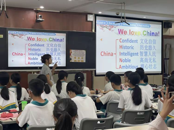 林老师通过精心设计的后读活动和总结阶段,引导学生深入探索文化体验与交流的重要性。她利用思维导图帮助学生总结文章,激发他们对教育交流必要性的思考。通过模拟英国学生访问广州的情境,学生分组介绍广州文化,并通过角色扮演,让学生在实践中体验跨文化交流的乐趣和挑战。在总结阶段,林老师播放的视频不仅展示了中国在国际舞台上的积极形象,还通过深入解读“China”一词的文化内涵,增强了学生的文化自信和民族自豪感。这一系列的教学活动,不仅提升了学生的语言技能,更在文化理解和情感认同上给予了学生深刻的启发。