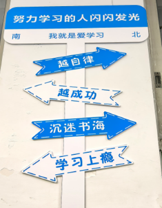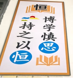 视线离开黑板报,挪动到墙壁,各班教室墙壁上都有“拼搏”、“思恒”和一些中英搭配的名言。让同学们在名言中找到共鸣,启迪着同学们的思想,同时也激励着同学们为目标去努力和付诸行动。三班还有热情洋溢的解说,绍着班级文化特色,看得出他们的细致与用心。