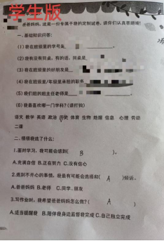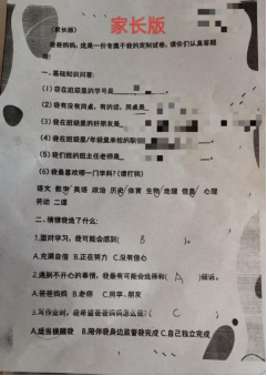 这次家长会,班级更是给家长和孩子准备了一个有趣的活动:一份关于孩子在校情况问卷,同时由家长和孩子分别填写,最后以孩子的填写内容作为答案,看看家长答对了多少题?以这样的活动形式让家长了解到自己对孩子的关心程度,以及亲子关系情况。