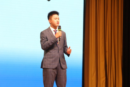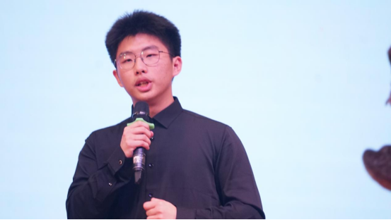 第五位选手陈浩铭的演讲以设问开头,先破后立,内容幽默且富有激情,他和同学们有充分的眼神交流,在舞台上运用适当的肢体语言向我们娓娓道来他的观点。