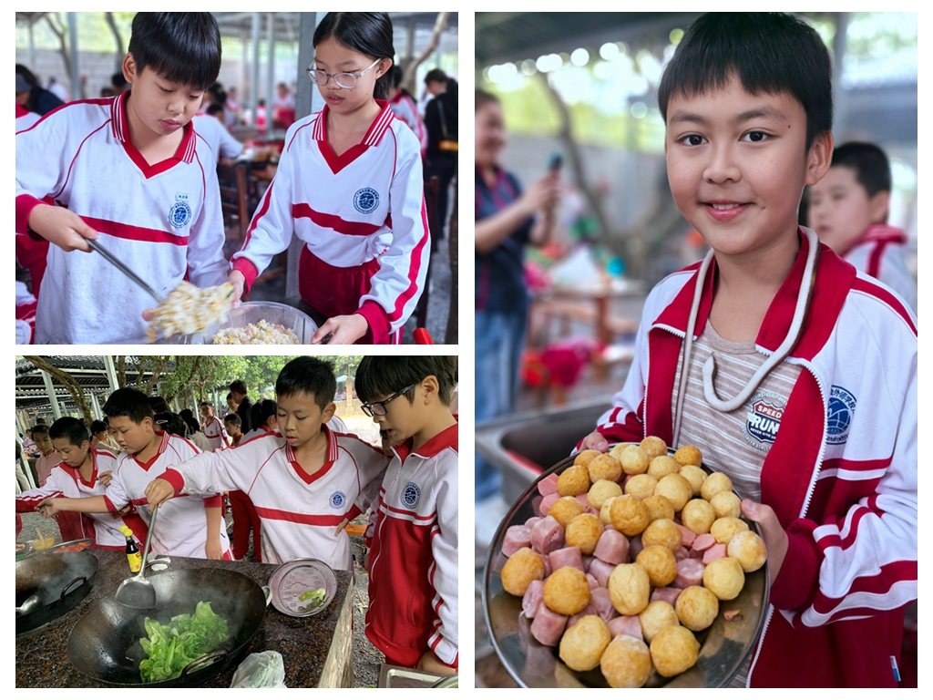 炊烟袅袅升起,孩子们自己动手,丰衣足食。他们早早分好组,分工合作,有的负责烧火,有的刷锅,有的洗菜,有的切菜,有的掌勺,干得热火朝天,充满了烟火气息。当一盘盘热气腾腾的菜肴端上餐桌时,孩子们的脸上洋溢着幸福与快乐,心中充满了骄傲与自豪。这次野炊烹饪活动不仅锻炼了孩子们的生活技能,也让他们体会到了合作与分享的乐趣。