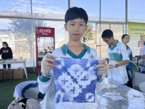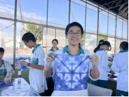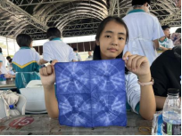 在扎染的过程中,同学们绞尽脑汁思考着怎样才能捆扎出好的图案。染上颜色后,我们更是抑制不住以及的好奇,像拆盲盒一般展开棉布。有的花纹精致,有的恰到好处;而有些则只得到一块深蓝的布。扎染便在大家的互相打趣和欢声笑语中结束了。