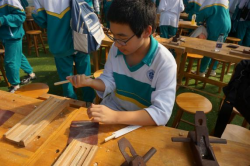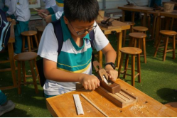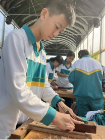 “天圆地方,七情六欲。”经过向导的讲解,大家了解到小小一支筷子竟有这么多内涵。现在,十班学子用自己的双手打造一双独属于自己的筷子,体验传统技法,感受文化传承。各位的筷子长短不一,粗细不同。可它是由一滴滴汗水凝聚而成。