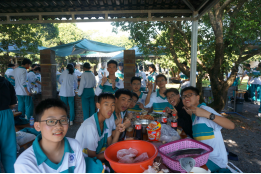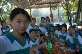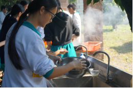 费尽九牛二虎之力,同学们已经饥肠辘辘。野炊,正是研学的核心所在——自己动手,丰衣足食。十班同学分成小组开始合作:会做饭的大厨娴熟的起锅烧油,不断翻炒;厨房小白们也不闲着,切菜分装添柴样样能行。不一会,香飘四溢,勾的人口水直流。大家稍作休息,饱餐一顿,便又踏上了下午的行程。
