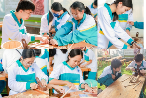 随后我们去做筷子,削筷子的工具刨子难以运作,力道控制适度,否则形状和光滑度都不合格。有的削出了许多倒刺,用砂纸磨平的时候窸窸窣窣的声音还挺带劲的,但是要防止木屑淘气,飞进了眼睛里。同学们心领神会,认真工作,大多数人还是顺利地做出了一副筷子。有爱好手工的同学,自留一个木片,带上砂纸,磨出了微型宝剑。