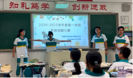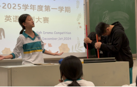 周日,英语的戏剧比赛如期举行。尽管只给每个组5分钟的时间准备,但那又如何呢?同学们脸上的笑容和跃跃欲试的兴奋感让准备的充分与否不再重要,每个人投入其中,不论名次,不论好坏,不论输赢,每个人都将会给与台上的表演者们送上发自内心的掌声与尊重!