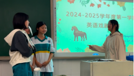 而选择《特洛伊木马之战》的同学,他们的准备可谓别出心裁,为木马的制作忙得不亦乐乎。虽然无法真的搬来一匹巨大的木马,但用纸板、布料制作的小木马道具或“人形木马”足够以假乱真。学生们甚至还在PPT背景中加入了城墙和士兵,活灵活现地重现了特洛伊战争的壮丽场景。至于表演,更是热血与智慧交织,英雄的勇敢、士兵的忠诚以及木马计谋的狡黠都通过流畅的台词和夸张的表情生动呈现。
