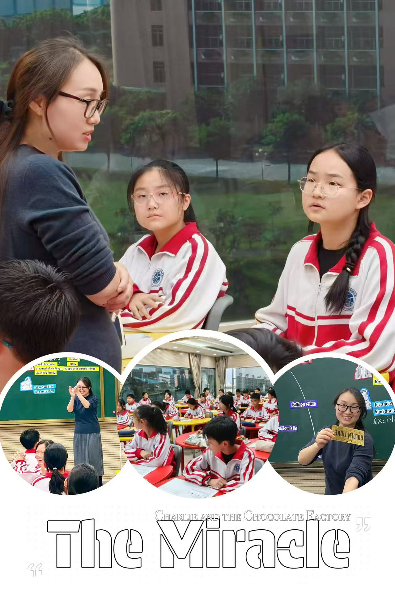 在寒意渐浓的季节里,一场旨在激发学生阅读兴趣、培养深度思考能力的整本书阅读公开课在小学部六年级英语组展开。本次活动围绕“深耕阅读沃土,共绘思维画卷”这一主题,不仅为学生们搭建了一个交流思想、碰撞智慧的平台,也为教师们探索整本书阅读教学的新路径提供了宝贵经验。 在五年级第二学期的暑假我们六年级组就启动了这本书的阅读计划,看相关电影以及配套视频的shadow-reading 逐步开展预热, 开学后的二课更是引领学生们积极主动阅读。本次我们六年级英语组认真研读《Charlie and the Chocolate Factory》这部充满奇幻色彩和深刻寓意的经典儿童文学作品,它通过一个简单的故事传递了重要的道德观念和人生哲理,让读者在阅读中既能享受乐趣又能获得启示。本学期六年级英语教研组公开课就围绕这本儿童文学作品开展教学研讨。