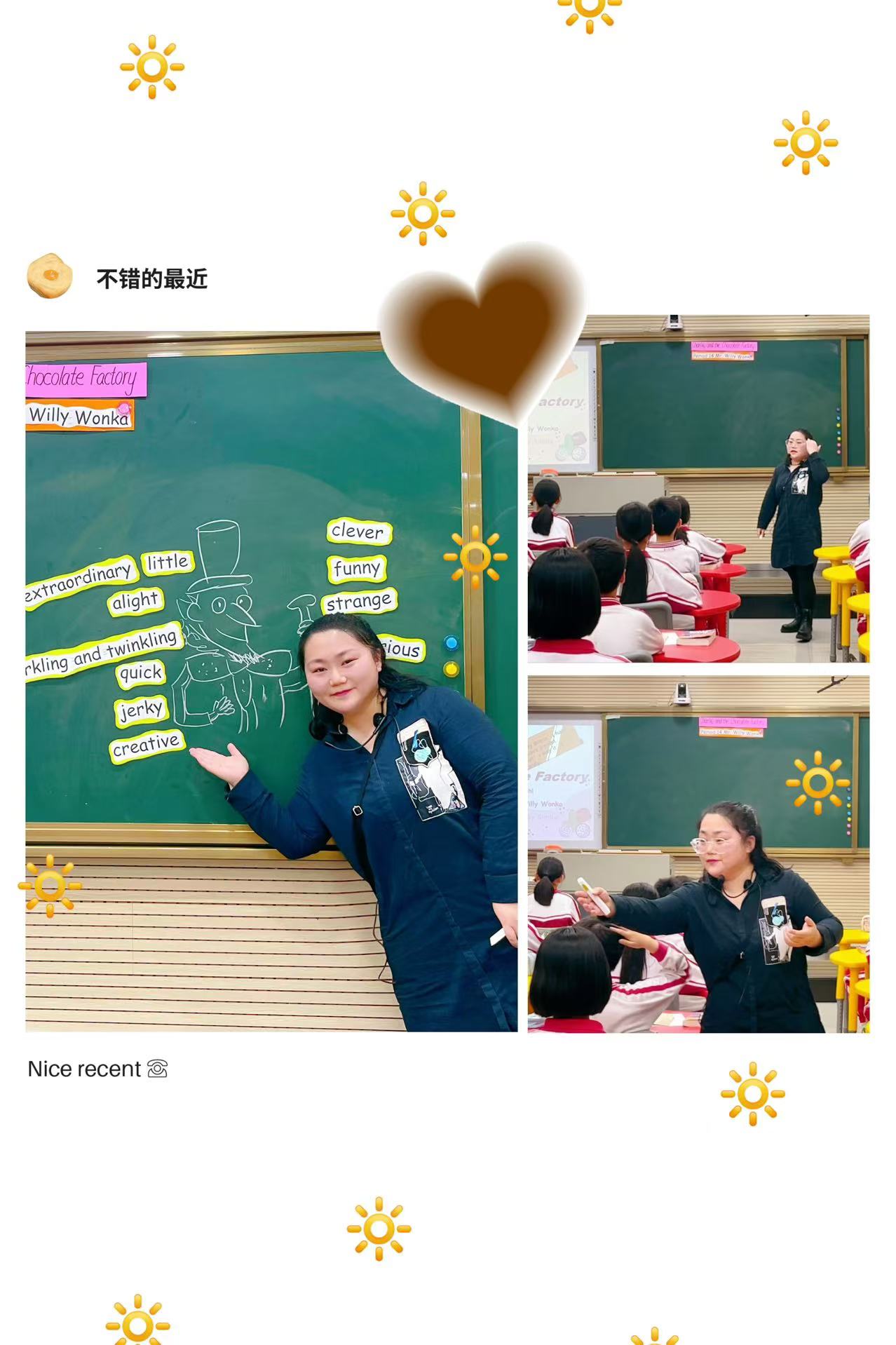 第六课时由罗欣老师为主设计师和执教。教授的内容为 Chapter 14 “Mr Willy Wonka”在教学中,采用更多样化的教学方法和手段,如小组讨论、个别提问、在线互动等,以激发学生的学习兴趣和参与度。 同时现场作画, 形象具体展现了主人公的外貌特征。引导学生通过阅读文本提取关键信息,结合图片分析Mr. Willy Wonka的性格特点、外貌特征的具体描述。这种结合方式既锻炼了学生的阅读理解能力,又提升了他们的信息提取能力。最后分析Mr. Willy Wonka对巧克力制作的热爱和创新精神,以及工厂中奇妙环境所带来的惊喜和震撼,成功引导学生珍惜生活中的美好与奇妙,并激发了他们对追求梦想的热情和创造力。同时,通过旺卡先生的信,传达了勇敢尝试、善良待人、珍惜机会等积极价值观,促进了学生正确价值观和生活态度的形成。