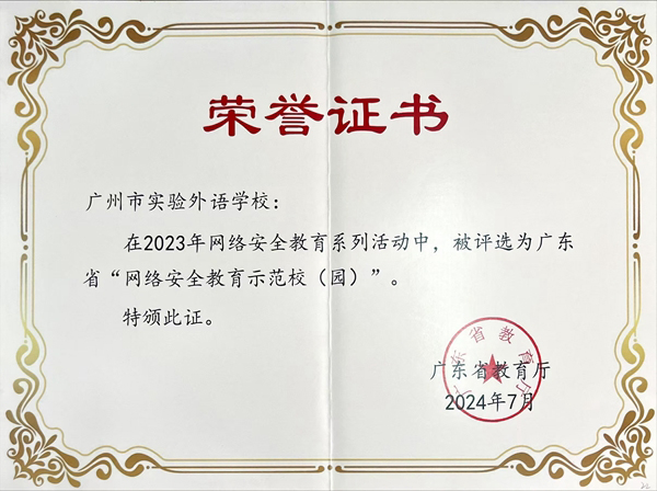 近日获悉,在2023年网络安全教育系列活动中,我校被评选为广东省“网络安全教育示范校”。