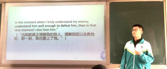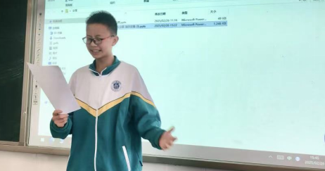 每周四的语文课铃声响起时,总有几位同学跃跃欲试,向老师宣布课堂分享开始,他们就抱着书籍或演讲稿依次登台。当经典文学撞上少年意气,当历史长河中的思想火种落入青春的荒原,五个灵魂的独白与千万个灵魂的共鸣在此交织。我们逐渐领悟:真正的好书与演讲是用文字在灵魂深处敲击出的回响。