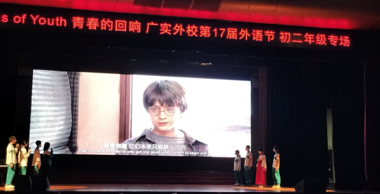 我们是第一个展示的班级。随着主持人的报幕声,我们深吸一口气走上舞台。我努力模仿着售货女巫上扬的尾音,而扮演哈利的同学则完美复刻了哈利略带拘谨的语调。最精彩的是扮演赫敏的丽尔同学,他不仅惟妙惟肖地模仿了赫敏稚嫩而略显傲娇的语气,还将她认真严肃的形象体现得淋漓尽致,引得场下阵阵掌声。