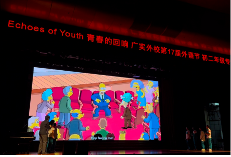 暮春的晚风裹挟着木棉花香涌入礼堂,在黄华楼流光溢彩的舞台中央,耳畔依稀回荡着辛普森一家夸张的美式笑声与女娲抟土造人的远古回响。这个寻常的周三夜晚,因英语配音与戏剧的双重绽放,在我青春的素笺上洇染出绚丽的墨痕。