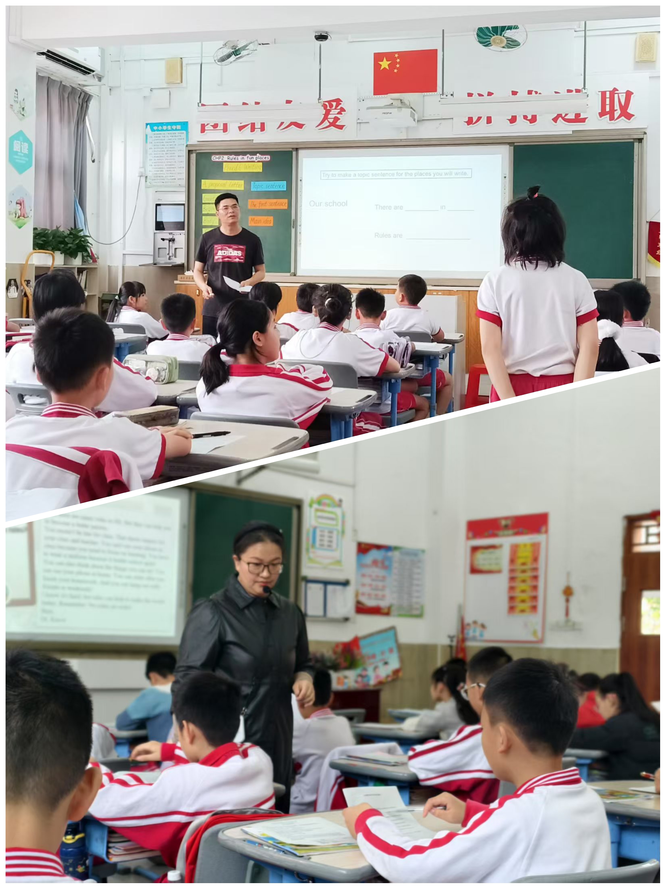 第四、五课时的执教老师分别为李桂青和褚咏梅。这两节课都属于拓展课型,分别指向更多场景规则和学校规则。李老师和褚老师课前精心准备,搜集了大量课外资料,运用AI技术和学生资源,在没有教材内容的情况下,为孩子们带来了精彩纷呈的课外拓展课。丰富的语言输入增强了英语语感,多样的教学活动锻炼了语言技能。孩子们在前三个课时的基础上,通过这两节课的学以致用和迁移创新,能力进一步得到了提升,规则意识也进一步得到了加强。通过这两节课,孩子完成了“守规则——制规则”的成长过程,跟哪吒一样,”become better and better”。