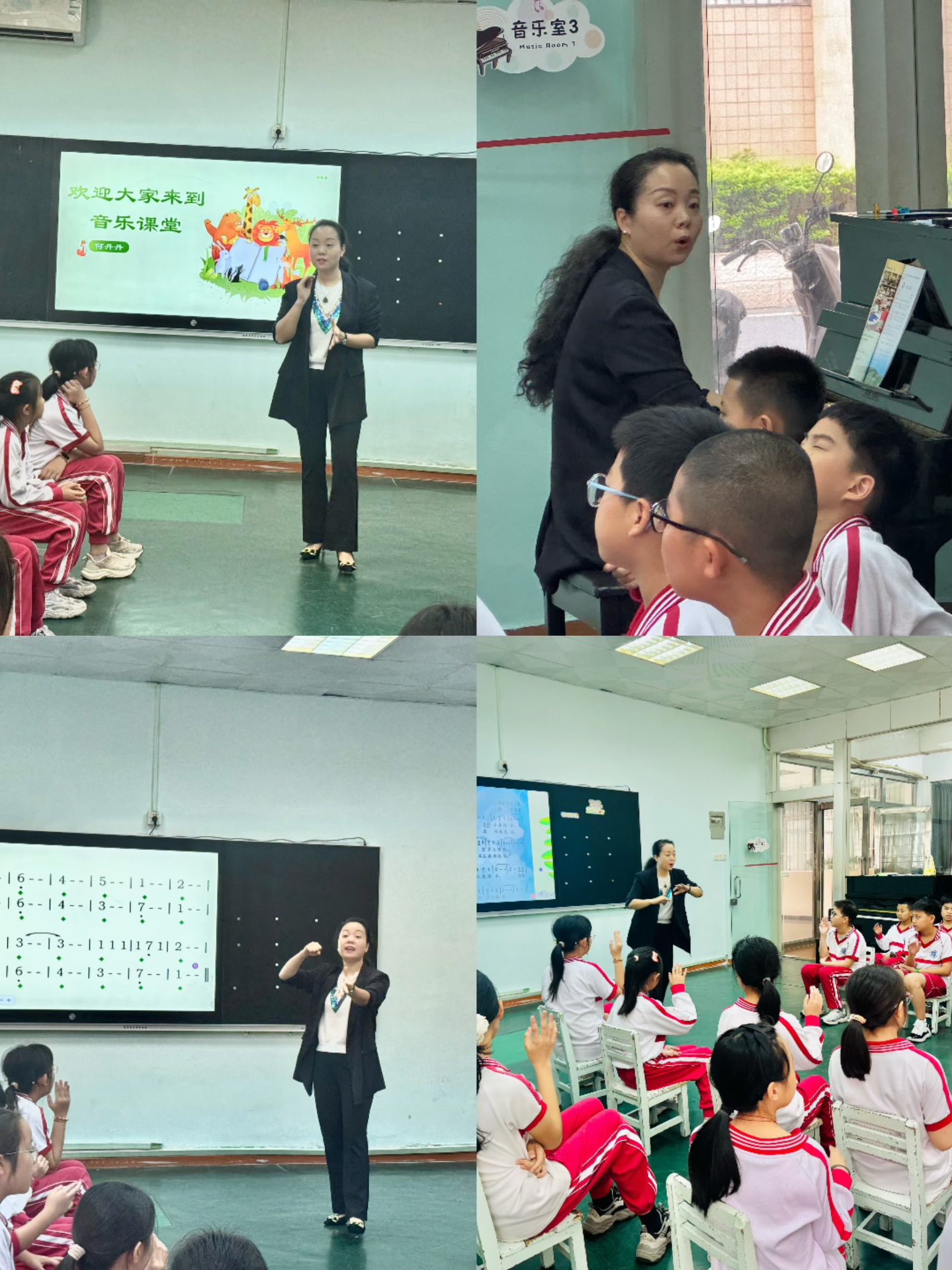 何丹丹老师的音乐课《牧场上的家》是一首三拍子的美国民歌,导入环节,老师选择用《小白船》进行欣赏导入,旨在通过熟悉的歌曲引出三拍子节奏。从实际效果看,学生能较快进入音乐情境,对三拍子轻盈、摇曳的特点有了初步感知。在感受三拍子强弱规律的环节,老师带领学生运用身体律动的方式,如拍手、跺脚、点头等。学生参与度很高,课堂气氛活跃,大部分同学都能通过身体动作准确表现出三拍子的强弱。在歌曲的教学部分,教师从乐句、弱起、曲式结构三个方面进行全面分析,特别是这首歌曲当中最重要的弱起知识点,何老师通过反复的演唱加深印象,还设计了音乐图谱的教学方式,让学生找到并且能够很好地理解这个知识点,也较为直观地展现了歌曲结构。