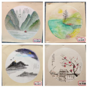 初一语文备课组精心策划,向同学发出邀请,鼓励大家选取自己喜爱的诗词,用画笔描绘诗中意境。这些作品或清新淡雅,或浓墨重彩,风采各异。有的作品再现李白笔下“轻舟已过万重山”的意境,悬崖峭壁间江水蜿蜒,江上船只穿梭,两岸山峦起伏。有的作品构图巧妙,将“清明时节雨纷纷”的画面展现得淋漓尽致,路旁新柳如烟,嫩绿的枝芽在风雨中轻轻摇曳。