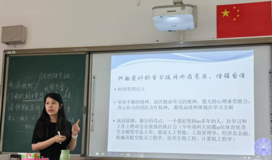 分享会上,史睿谦学长围绕 “如何学好数学”这个关键问题,从思想、行动、交流、实践四方面展开介绍。他鼓励同学们在思想上要勇于突破自我,大胆迈出学习数学的第一步;行动上,制定科学合理的学习计划,确保学习有条不紊地推进;学习过程中,积极与老师、同学交流探讨,拓宽解题思路;同时,通过大量有针对性的练习,巩固所学知识。分享最后,史学长以“We choose go to the moon” 收尾,鼓励大家主动迎接数学学习中的挑战,积极思考,在数学知识的宇宙中探索前行。