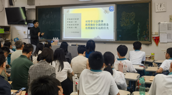 历史巫永辉老师的到来,作为有趣的年轻老师,获得了全班同学的喜爱,他进门之时全班同学用热烈的掌声表达了他的尊重和欣赏。巫老师在发言中展示的2班优秀的历史成绩,及进步同学的具体提升的分数,他建议同学们运用的学习历史方法,家长们频频点头表示对他的认可。