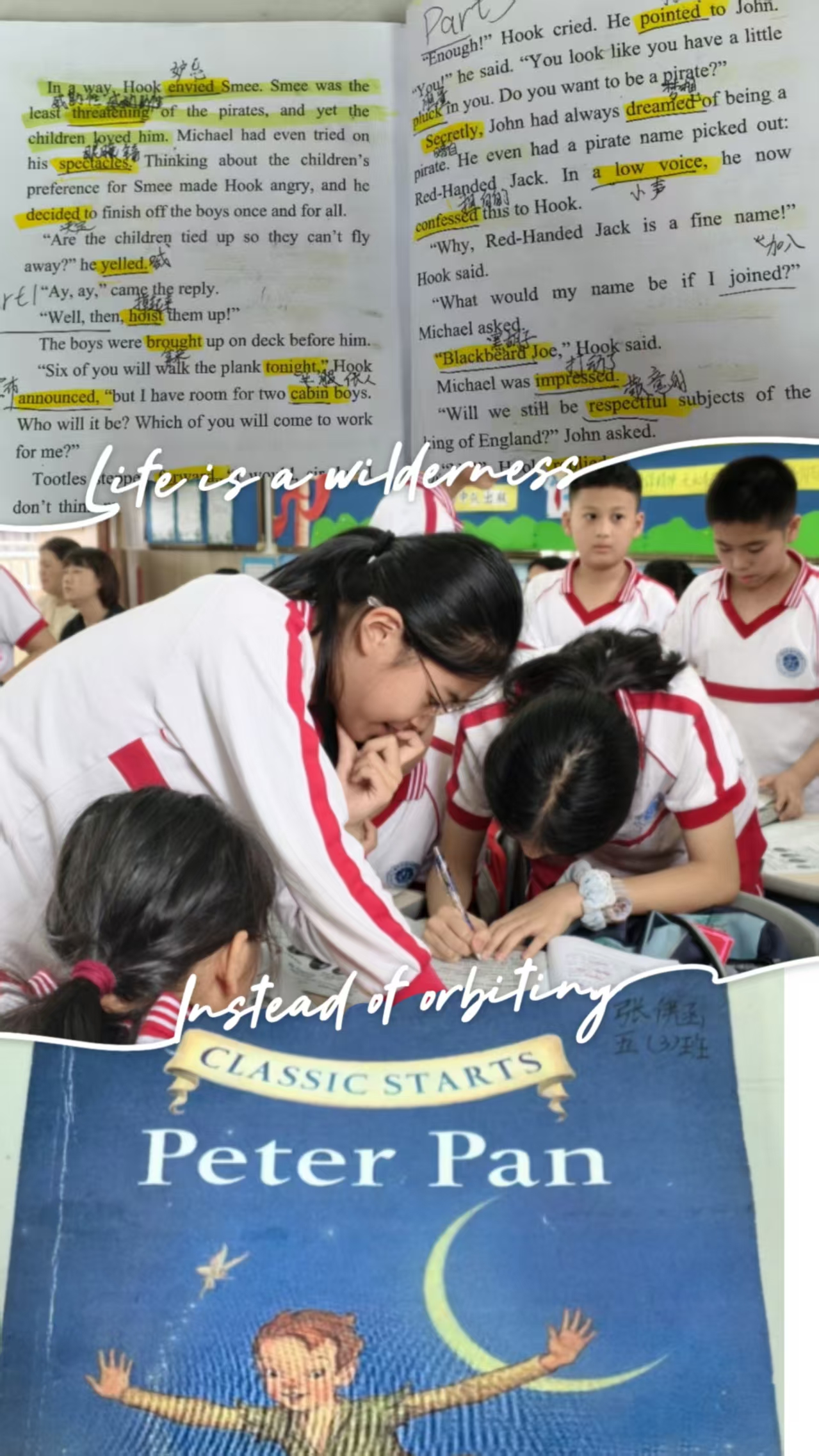 通过开展Peter Pan英文原版书的阅读活动,五年级的孩子们爱上了阅读Peter Pan 的原版故事,积极主动查阅字典,做阅读笔记,展开阅读之旅,进入一个原版长篇小说的奇妙世界!