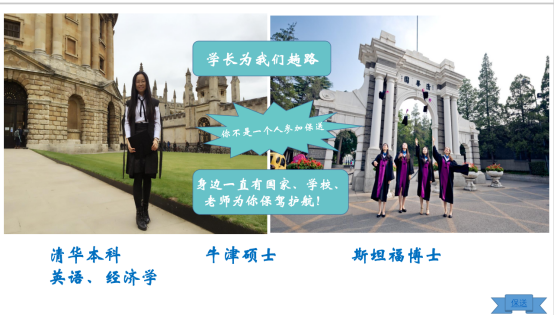 接着,结合多元升学政策背景和新高考三大政策:促进学生健康发展、科学选拔各类人才、促进社会公平公正,让大家具体了解了“自主招生”优势,“强基计划”政策流程,我校外语类保送新政策以及发展情景,学长们的出色表现。这些前瞻性信息给了同学们一针强心剂,大家听得兴致勃勃。