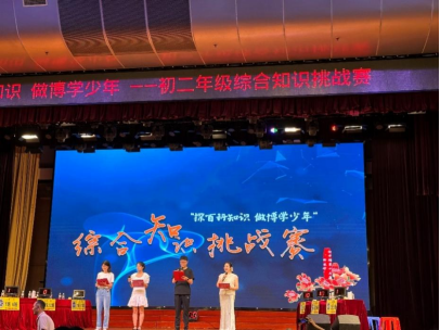 5月22日晚,我校初中部第十五届科技节核心活动——"探百科知识 做博学少年"初二年级综合知识挑战赛在黄华楼礼堂隆重举行。来自初二年级的六组跨班级联队经过两个多小时的激烈角逐,最终由8班、12班组成的第二组联队和4班、9班组成的第六组联队凭借出色的综合表现摘得桂冠。比赛现场气氛热烈,观众席上加油声此起彼伏,展现了同学们对知识竞赛的热情与期待。