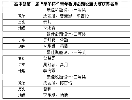 为全面落实新课标理念,深化课堂教学改革,促进青年教师专业成长,提升学科命题能力,我校成功举办了高中部第一届“摩星杯”青年教师命题与说题比赛。政治、历史、地理学科为同一赛组。本次比赛以“命题科学性,说题启智性”为主题,通过"以赛代训"的创新模式,为政史地学科青年教师搭建专业成长平台,推动教学评一体化改革走深走实。