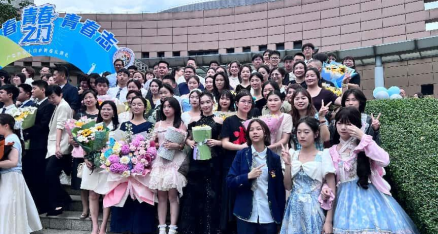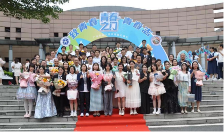 下午两点,阳光普照,洒在我们青春的面庞,我们穿着自己心爱的礼服来到黄华楼前。同学们或身着笔挺西装,风度翩翩,或身着飘逸长裙,温婉动人。“九班,九班!”听到林老师的一声呼唤,我们站到了红毯前。同学和家长携手一起跨过青春之门,老师们在两旁为我们鼓掌。这一刻我不仅感受到自己青春路上有一路陪伴的家长和老师,更明白了成长路上的每一步都值得被铭记。