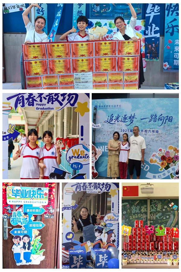 随着毕业纪念墙前的合影结束,这场充满温情与感动的毕业活动也画上了圆满的句号。孩子们带着满满的祝福与期望,带着对未来的憧憬与信心,踏上了新的征程。他们将带着在广实外校所学到的知识、所养成的品德、所结下的友谊,勇敢地迈向中学生活,开启人生新的篇章。
