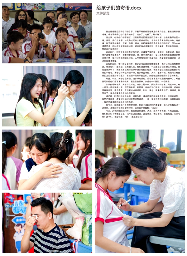 文章的最后附上班主任黄老师深情感人的毕业寄语