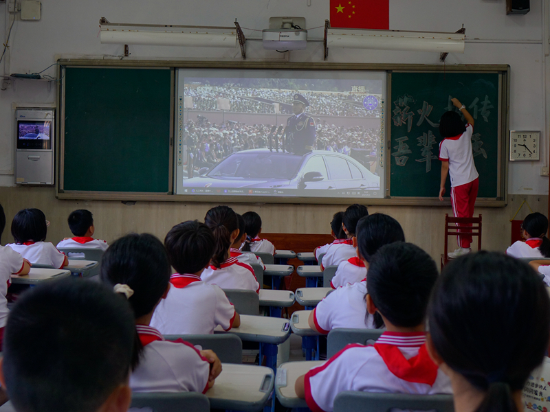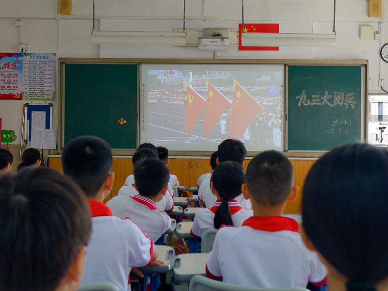 根据学校统一安排,本次观影活动覆盖全校师生。上午8时许,各班级学生已提前在教室就座,教师则在指定场所集中收看。所有师生着装整洁,党员佩戴党徽,现场庄严有序。