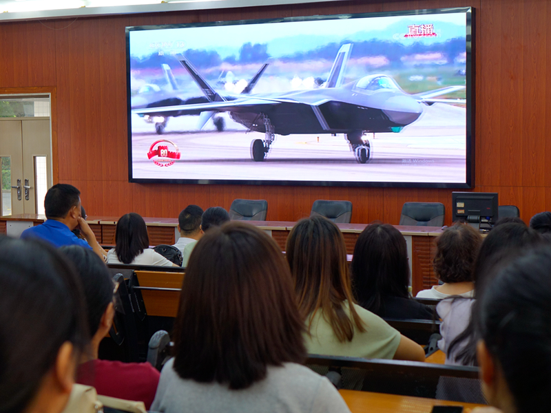 上午9时整,阅兵仪式准时开始。当激昂的乐曲响彻天安门广场,当威武的受阅方队迈着铿锵步伐依次通过,当先进的武器装备整齐列阵展示大国力量,70分钟的阅兵仪式,每一个画面都深深触动着师生们的心灵,屏幕前的师生们无不心潮澎湃。