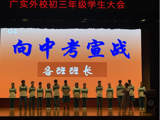 “脚踏实地,志存高远!”在“向中考宣战”环节,各班班长代表各班班级喊出备考宣言,坚定的声音传递出全体初三学子冲刺中考的决心,现场氛围热烈激昂,掌声如潮。