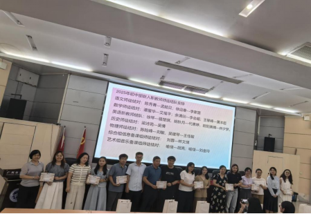 初秋时节,万象更新。为总结过往,展望未来,凝聚初中部全体教职工的智慧与力量,共同开启新学期的崭新篇章,我校初中部于2025年9月8日晚在阶梯室隆重召开了新学期全体教师大会。本次大会由教学处王佳琼副主任主持,初中部全体教职员工齐聚一堂,共绘初中部发展新蓝图。