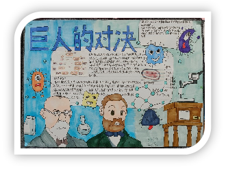 此次展出的优秀作业,源于暑期学科特色实践任务。在生物学科展区,两类作品格外吸睛:一类是围绕《巨人的对决》一书创作的手抄报,同学们以A3纸为画布,图文并茂地呈现法国微生物学家巴斯德与德国微生物学家科赫的科学故事——既有两位巨头“激烈斗法又惺惺相惜”的科研历程,也标注了培养基、疫苗、抗生素等重大成果的发现过程,字里行间满是对科学先辈推动人类战胜疾病的敬意;另一类是“一图一故事,野保小卫士”主题作品,真实图片搭配文字,记录下同学们的野保行动:有的分享在社区宣讲《野生动物保护法》的经历,有的讲述在湿地公园救助受伤鸟类的过程,还有的记录了劝诫家人拒绝食用野味的细节,生动诠释了“保护野生动物就是拯救人类”的深刻内涵。