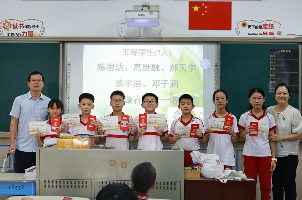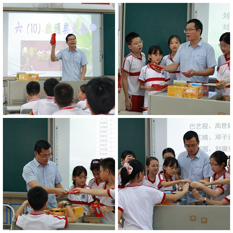 随后,“学习之星”、“特长奖”、“优秀少先队员”、“优秀班干部”等众多奖项逐一揭晓。每当大屏幕上闪现出自己的名字,同学们便奔向讲台,挑选心仪的奖品,接过奖状与红包,脸上洋溢着满足与自豪,与镜头定格下这难忘的一刻。