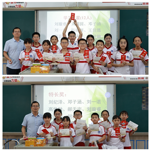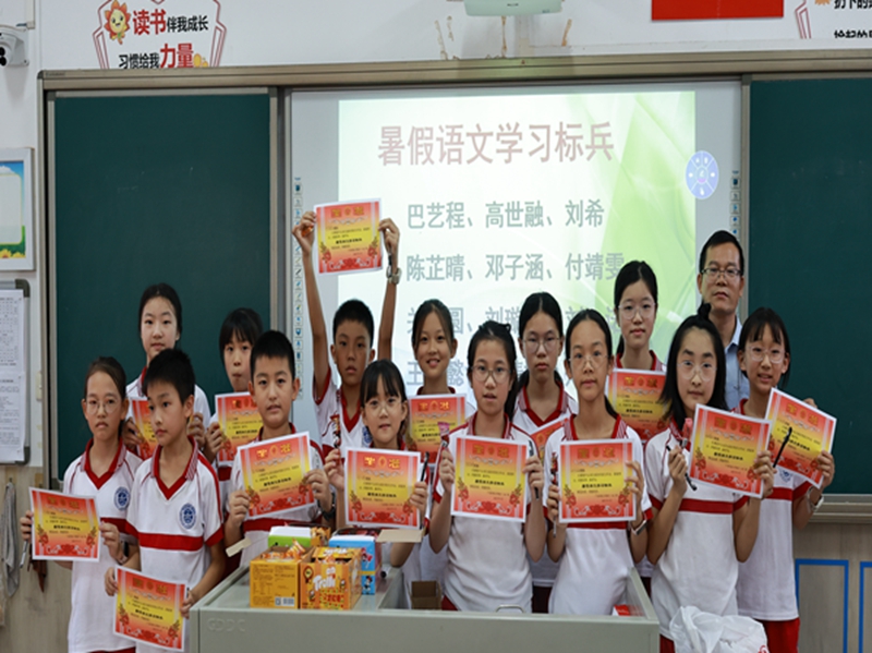 紧接着,暑假作业的表彰环节如约而至。肖老师依据同学们完成作业的质量,评选出了十四位“暑假语文学习标兵”,并对在练字、古诗背诵、阅读记录、作文等方面表现突出的同学,颁发了特别的小奖品,以此鼓励大家在假期中也不忘学习,持续进步。