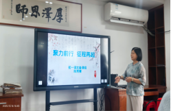 初一语文备课组组长陈秀青老师以“聚力前行,征程再起”为主题,介绍了备课组的团队建设、教研模式与分层走班教学实践。备课组“七仙女组合”秉持团结协作、勤奋好学、爱岗敬业的精神,形成“一周一集备、一课一主备、一周一主题”的教研机制,通过课件与资源共享,充分发挥集体智慧,此前已完成调研命题研讨、国庆作业设计、孟懿贝老师赛课反思、分层走班教学跟进等工作。