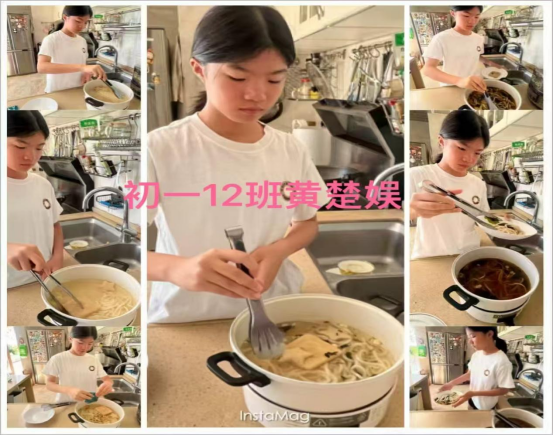 活动期间,同学们在家各显神通:有的系上围裙学做饭,有的跟着家人包饺子,有的给家里做了大扫除,还有的主动承担了饭后洗碗的活儿,每个人都在认真学做着自己力所能及的家务。