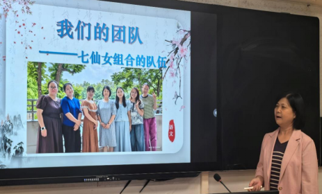 初一语文学科备课组长陈秀青老师率先上台发言。她详细介绍了初一语文备课组构建“有章可循”的运行机制,聚焦“深度学习”的课堂建构,塑造“书香雅趣”的语文气质,用心做好分层走班教学。同时,她也坦诚地反思了教学中存在的问题,如“两极分化”初现端倪,如何让学生保持语文学习的兴趣,养成阅读习惯等。