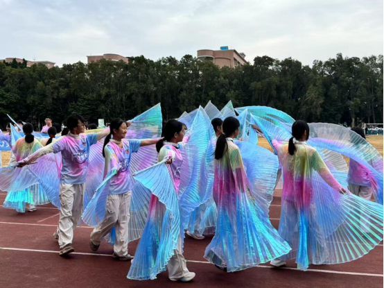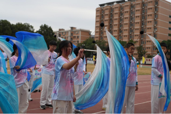 金秋的阳光为运动场镀上荣耀的色泽,在激昂的旋律中,我校运动会正式拉开帷幕。当初二五班的方阵踏着铿锵步伐入场时,瞬间成为全场焦点——同学们手持渐变彩绸,化身“浴火重生的凤凰”,以一场惊艳的舞蹈,开启了五班独有的运动诗篇。