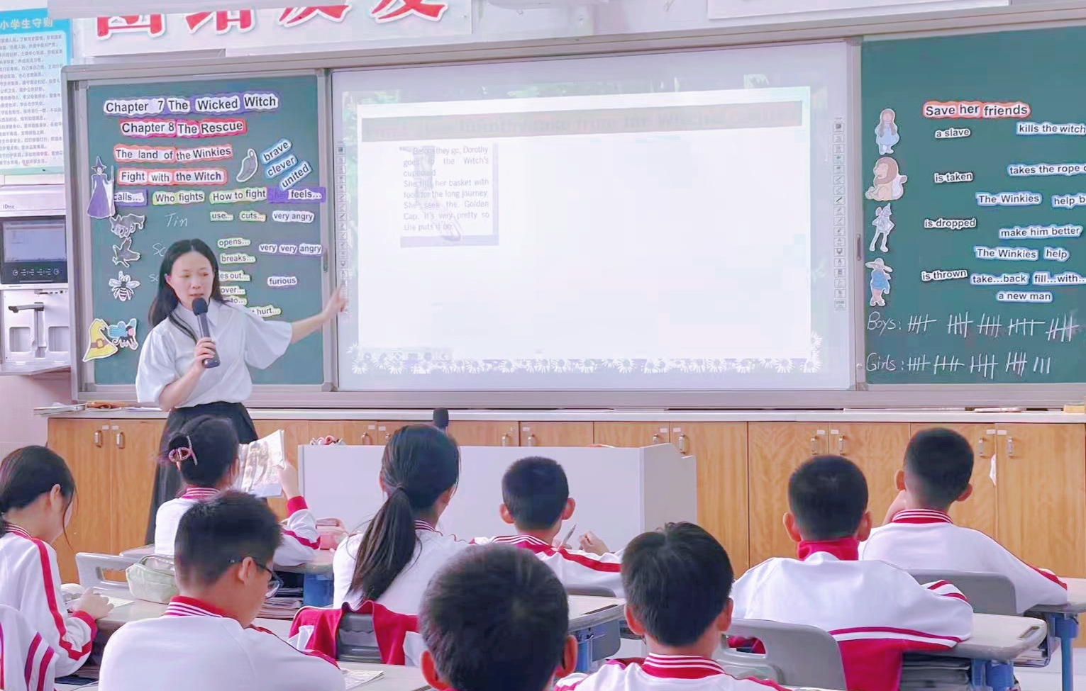 为扎实推进英语整本书阅读教学,帮助学生在经典文本研读中提升语言能力、涵养文化素养,五年级英语备课组近期开启《绿野仙踪》整本书阅读展示课系列活动,系统呈现整书导入、分章节精读等多元教学环节,搭建完整教学链条。备课组精心选定黑布林改编版《绿野仙踪》,一方面因文本语言地道、难度适配五年级学情,章节清晰的递进式结构便于学生搭建阅读框架,能有效积累词汇、提升阅读流畅度;另一方面,故事中 Dorothy 与伙伴们在冒险中历练智慧、爱心与勇气的内核,契合小学生品格养成需求,且作为西方经典文学,可助力学生拓宽文化视野,培养跨文化理解能力。