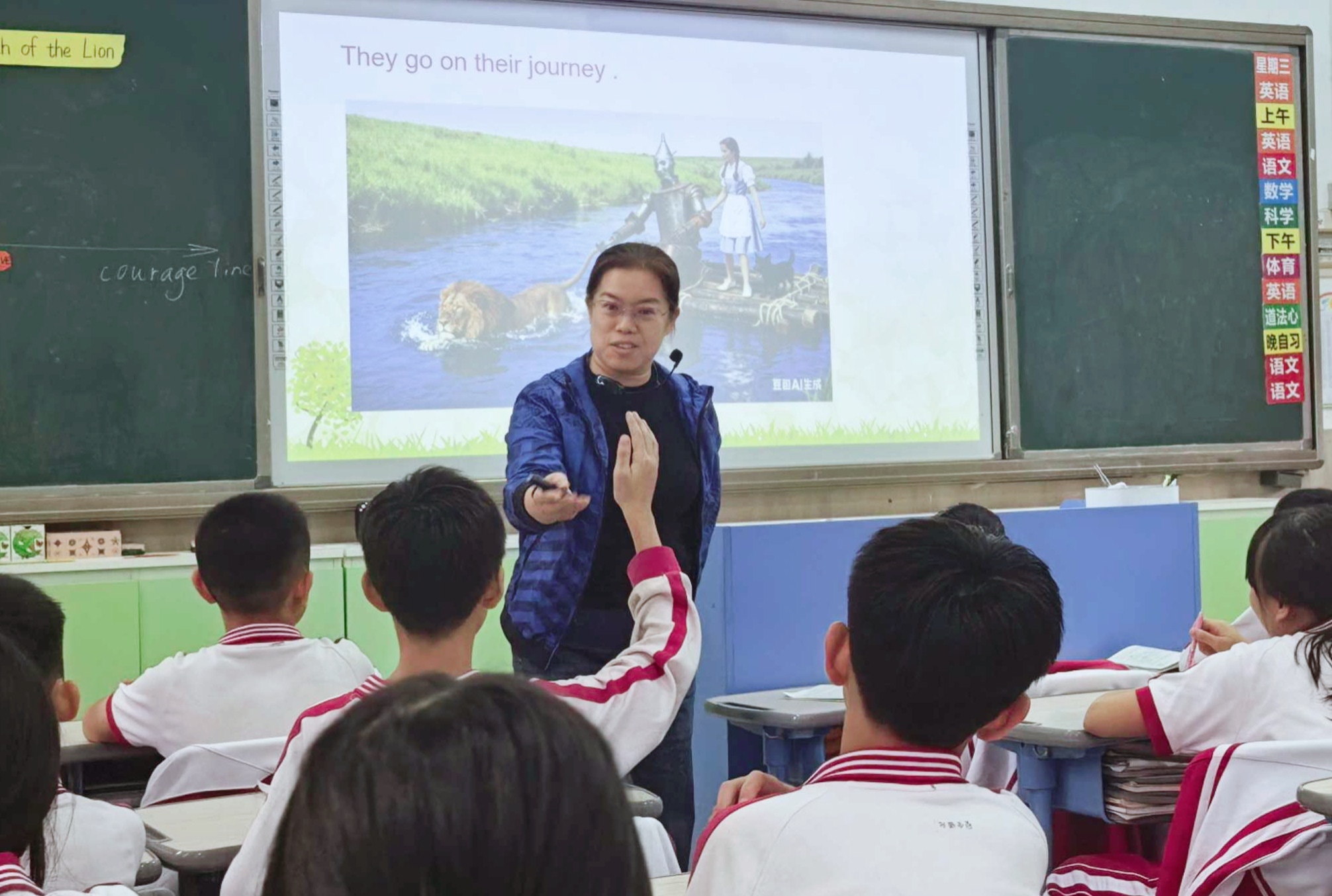 褚咏梅老师执教的课,以 “狮子成长蜕变” 为主线,打破单章节限制,从整本书中遴选其成长关键情节,采用 “故事线 + 能力点” 双轨模式 ——“故事线” 串联狮子从胆怯到勇敢的片段,“能力点” 紧扣文本设计语言与思维任务。课堂借助角色视频唤醒认知,通过 “情节 - 性格” 连线梳理成长节点,再以小组表演还原狮子语言动作。从 “怕敌人” 到 “护伙伴” 的细节对比中,层层剖析成长轨迹,将语言学习、思维训练与 “勇敢源于责任” 的价值引领结合,既提升文本解读能力,又让学生领悟勇敢真谛,互动性与实效性兼具。