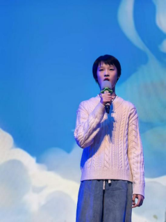 马若为同学演唱的歌曲《有我》同样令人印象深刻,她用清澈的嗓音,将歌曲中蕴含的坚定信念与青春量的娓娓道乐,每一句歌词都充满了对未来的憧憬与对梦想的执着追求。她的演唱不仅展示了扎实的唱功,更传递出了新时代青年积极向上,勇于担当的精神风貌。